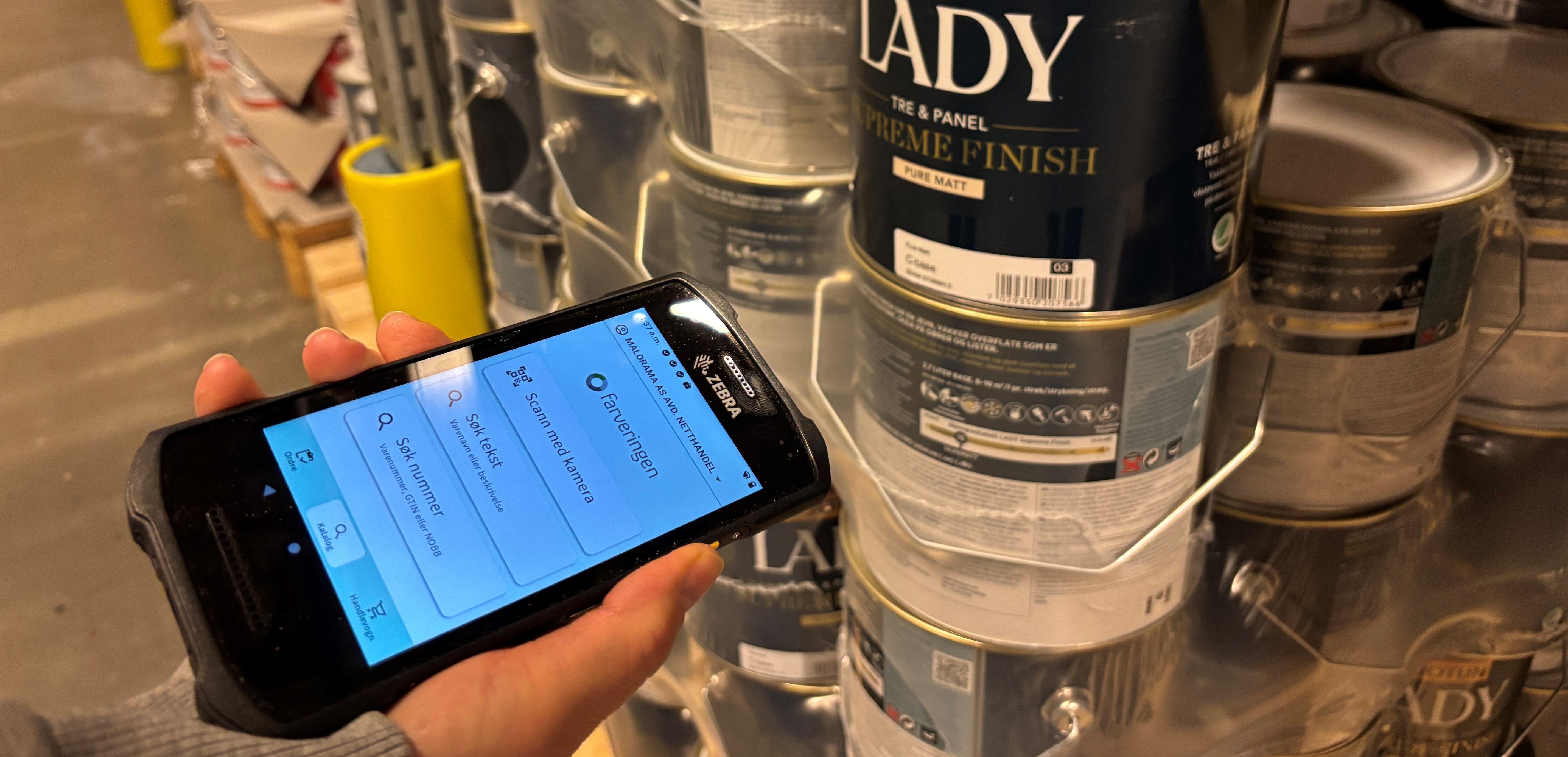 - I tillegg har vi egne Zebra bestillingsterminaler/ scannere i omløp der vi har installert Farveringen-appen. Du logger inn i appen med eksisterende brukernavn og passord, og logges inn på din konto hos oss. Du har nå tilgang til samme sortiment og pris i appen som du har på Farveringen.no. Merk at vi har utviklet en helt ny versjon av Farveringen-appen, og ruller denne ut til eksisterende terminaler i disse dager. Les mer om terminal og den nye appen her.