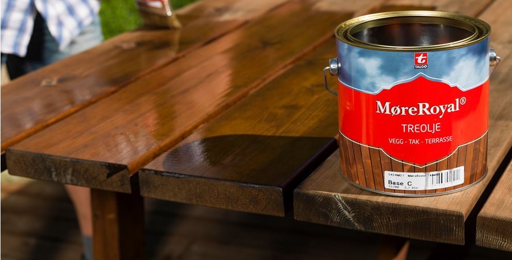 Tre behandlet med MøreRoyal Terrasseolje Eksklusiv kan overmales etter at den er godt tørket, med de vanligste merkene som er på markedet.
